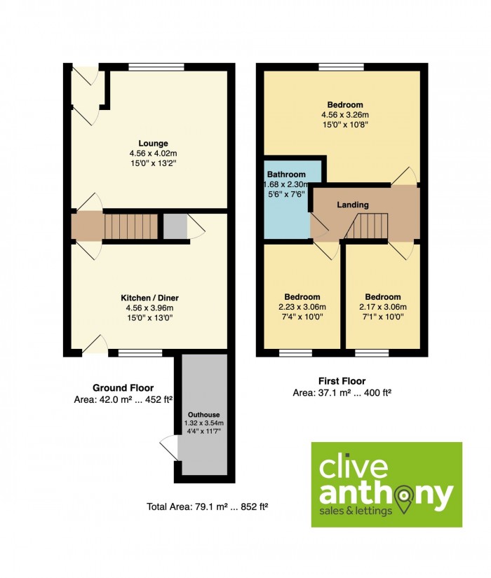 There is a flagged rear courtyard with a large brick stores and a small front garden with a pathway leading to the front door.