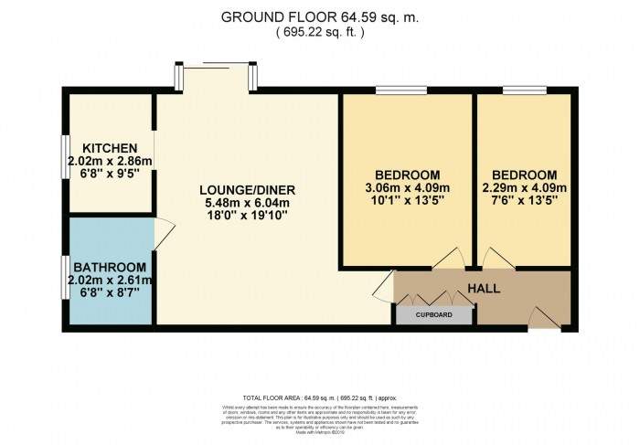 The hallway has a most useful built in storage cupboard. There is a good sized lounge/dining room with a feature square bay window/door onto the patio area and communal gardens and enough space allowing for lounge and dining furniture. The kitchen has a range of matching wall and base units with work surfaces, integrated oven and hob and space for a fridge/freezer. The two bedrooms incorporate a range of fitted wardrobes and both have carpeted flooring. The shower room is a three piece suite with low level toilet, pedestal wash hand basin and walk in shower with complimentary tiled walls. There is a utility area with space for a washing machine