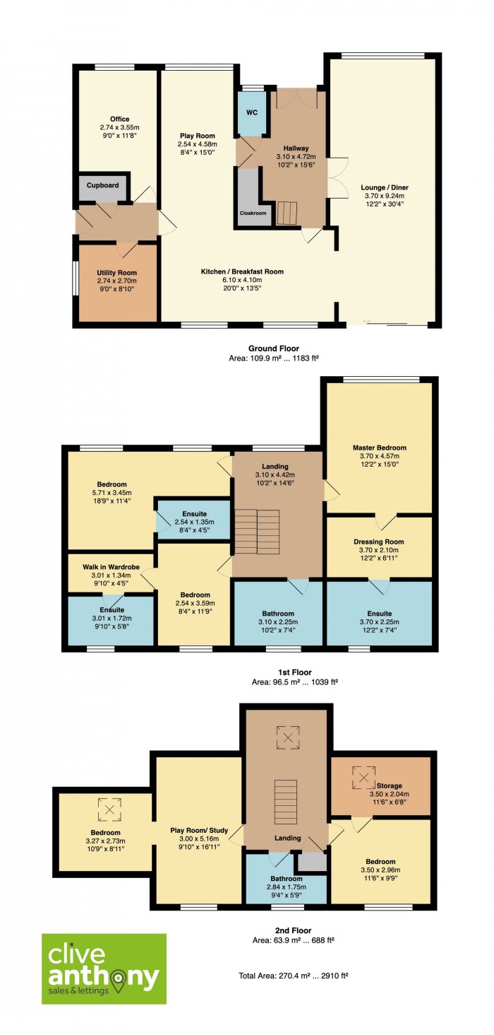 A stairway from the first floor landing leads up to the second floor, which has a storage cupboard that houses the high capacity hot water tank. The landing provides access to the fourth and fifth bedrooms as well as the fifth bathroom. The fourth double bedroom has carpeted flooring, double glazed window with rear views and allows ample space for freestanding furniture. A doorway from this room provides access into a play room/study area. The fifth bedroom is also a double room. The second floor bathroom incorporates a bath with shower unit above with glass shower screen, contemporary hand wash basin set on a unit with storage below, low level w.c and complementary tiled walls and flooring.