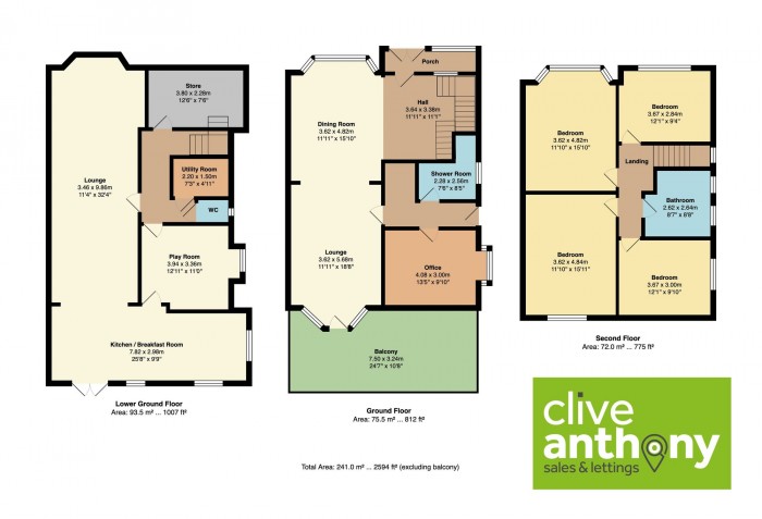 Descend to the lower ground level to discover a Play Room, a bright and airy Dining Kitchen with under floor heating and patio doors onto the garden, a comfortable Family/Living Room, a Utility Room, and an additional WC and a storage room.