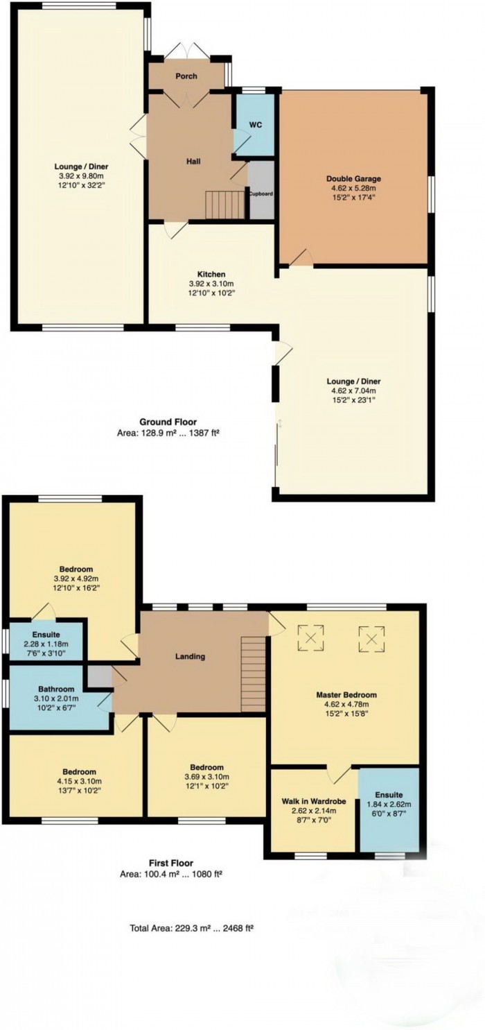 Upstairs, the property boasts four well-proportioned bedrooms, two of which benefit from en suite shower rooms and most include fitted or free standing wardrobes ensuring privacy and convenience for family members or guests, while a contemporary family bathroom caters to the remaining bedrooms.